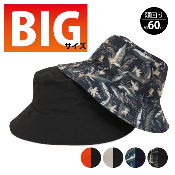 リバーシブル メンズ ハット 大きいサイズ あご紐付き 綿100% 帽子 大きめ 深め ビッグサイズ バケットハット 2way