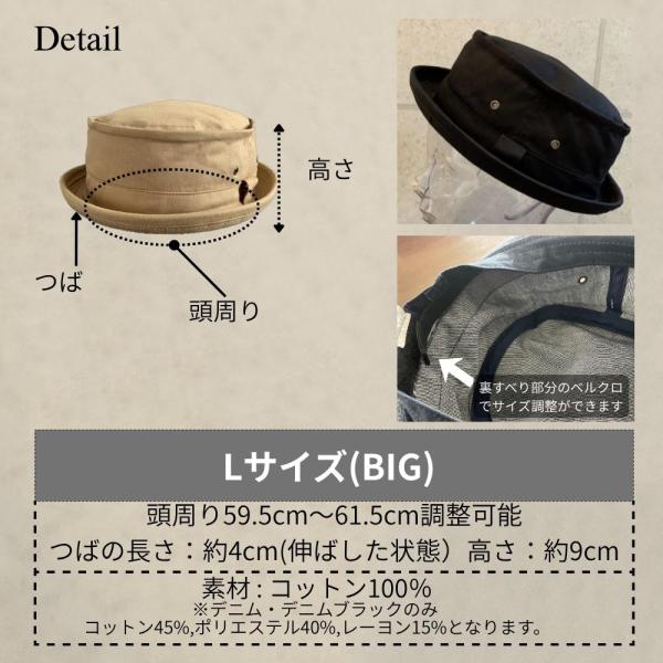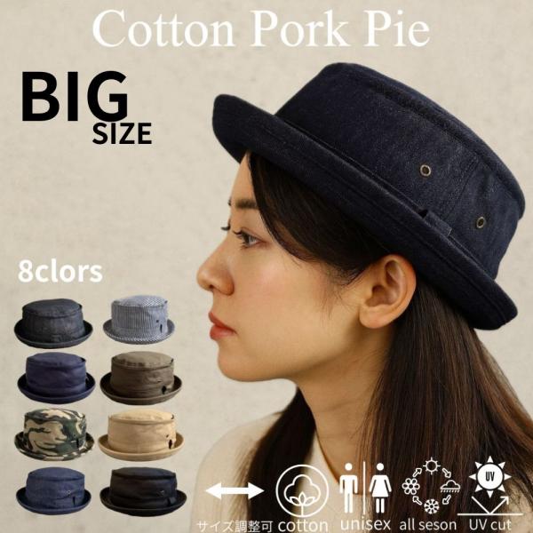 8色展開 帽子 BIG L 大きい サイズ ポークパイ ハット コットン オールシーズン サイズ調整 男女兼用 スタンダード 定番 【店内商品2点以上ご購入で送料無料】