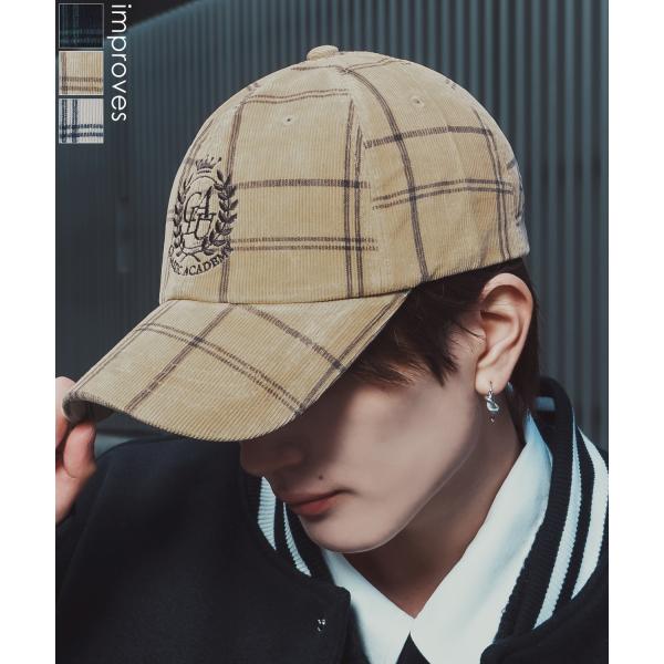 コーデュロイ チェック柄 キャップ ユニセックス ロゴ刺しゅう レトロ カジュアル アメカジ 古着MIX 韓国 ベースボールキャップ 帽子