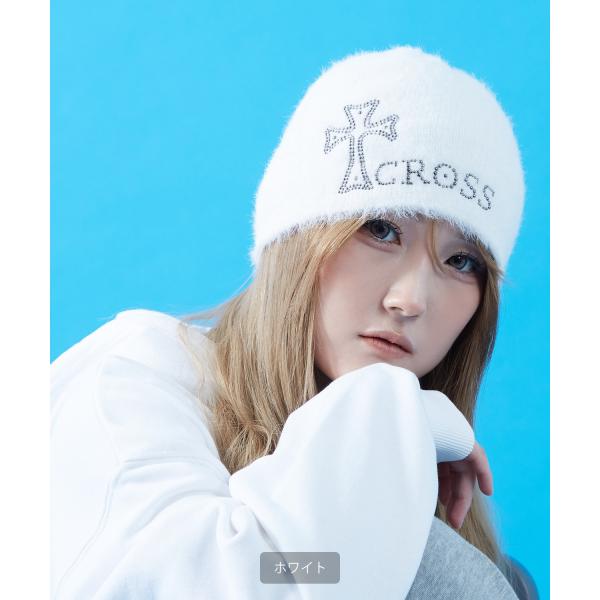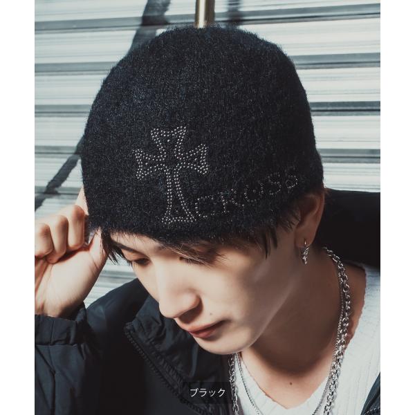 ビーニー ニットキャップ クロス デザイン スタッズ 刺繍風 秋冬 シャギー ストリート 韓国ファッション Y2K ユニセックス 防寒 帽子
