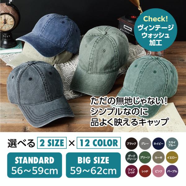 ヴィンテージウォッシュ キャップ メンズ レディース 選べる2サイズ×12色
