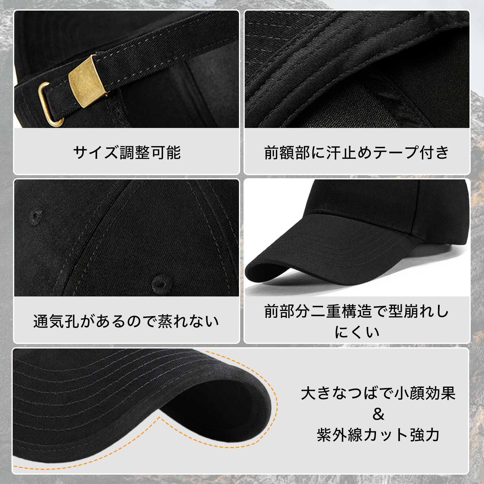 キャップ メンズ 深め 大きいサイズ 特大60~65cm 調節可 無地 帽子 二重型崩れにくい 軽量 UVカット 日除け スポーツ テニス ゴルフ アウトドア 登山 釣り