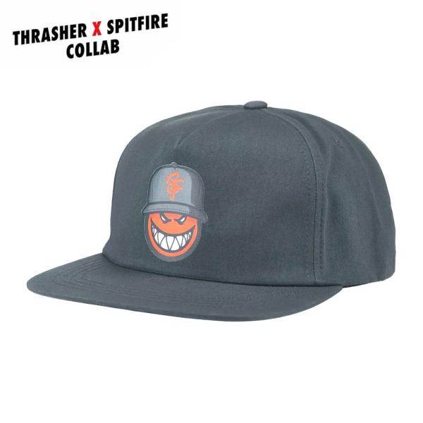 THRASHER X SPITFIRE / SF LOC SNAPBACK usa企画 スラッシャー キャップ スピットファイア スケボー ブランド チャコール 帽子 平つば ロゴ スケートボード