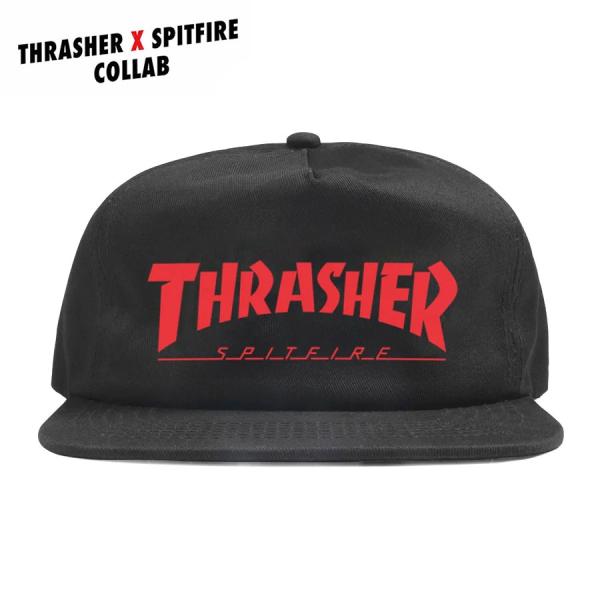 THRASHER X SPITFIRE / SNAPBACK usa企画 スラッシャー キャップ スピットファイア スケボー ブランド スケーター ブラック 黒 帽子 平つば ロゴ スケートボード