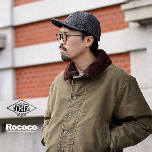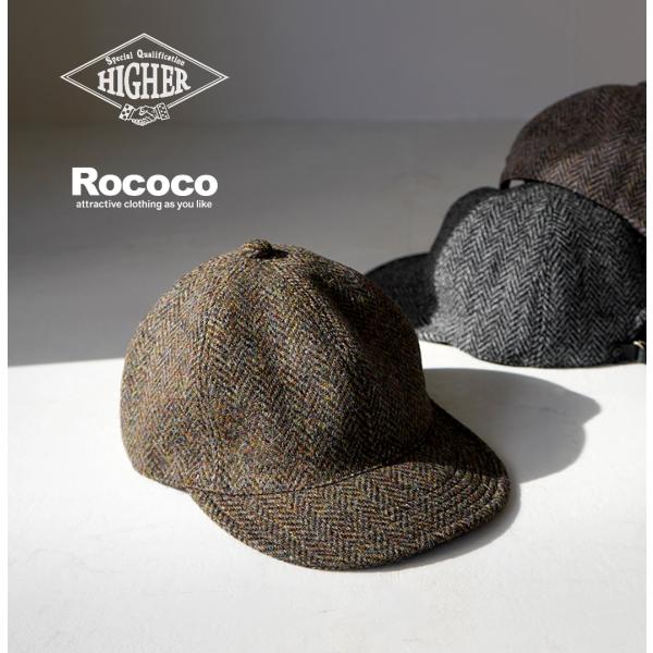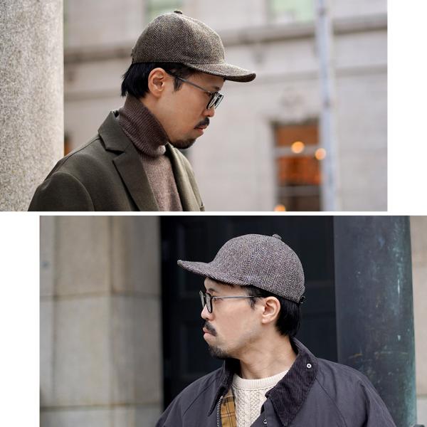 HIGHER(ハイアー) 別注 ハリスツイード ヘリンボーン キャップ / ウール メンズ 帽子 日本製