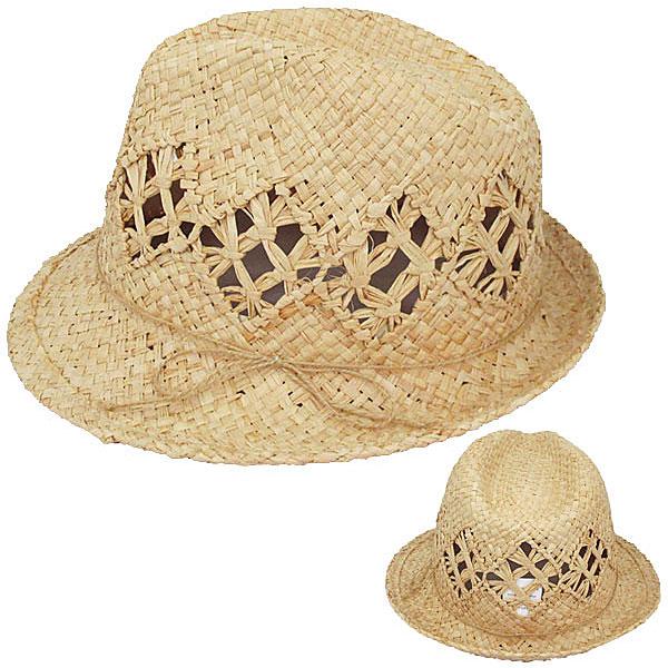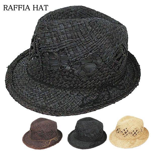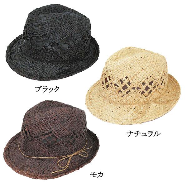 ラフィア 帽子 中折れハット 透かし編 ラフィア帽 麦わら帽子 ラフィアハット ストローハット メンズ レディース 春 夏 RAFFIA HAT 6611