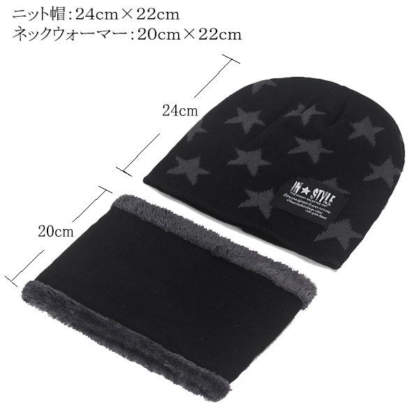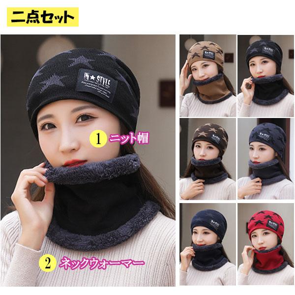ニット帽 2点セット(帽子+ネックウォーマー) レディース 星柄 帽子 ボア付き ニットキャップ ワッチ ビーニー メンズ レディース 秋 冬 KNIT CAP 4006