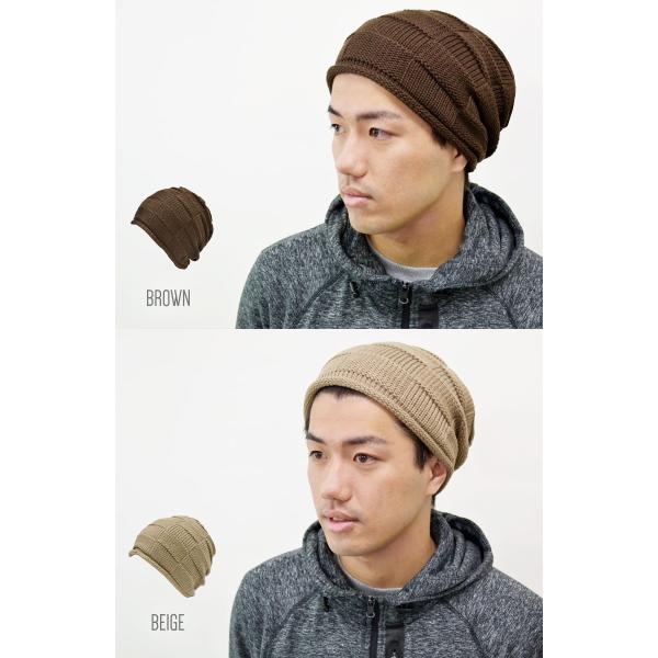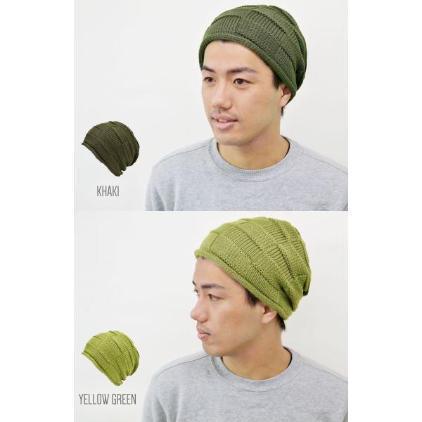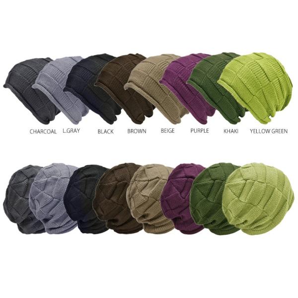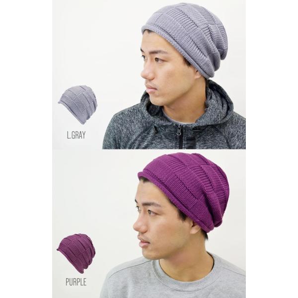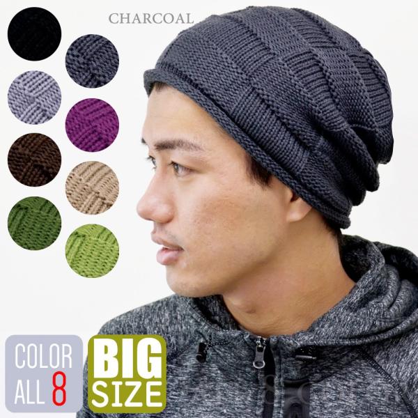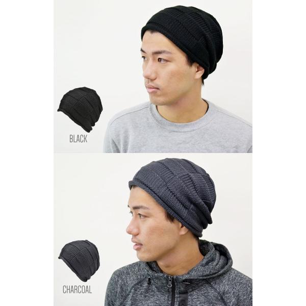 ニット帽 メンズ 【メール便のみ 送料無料 】 帽子 ロールアップ ブロックチェック編み 大きいサイズ Lサイズ ビックサイズ 防寒 秋冬 メール便×1