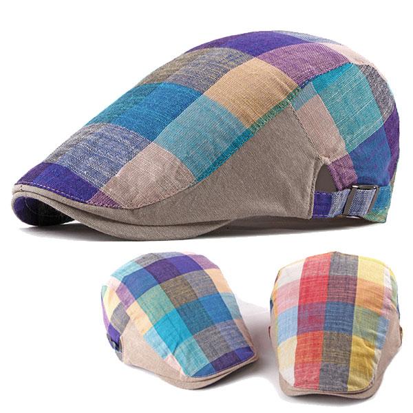 カラー ハンチング 帽子 チェック柄 綿麻 パッチワーク ハンチング帽 メンズ レディース 春 夏 秋 HUNTING CAP 7130