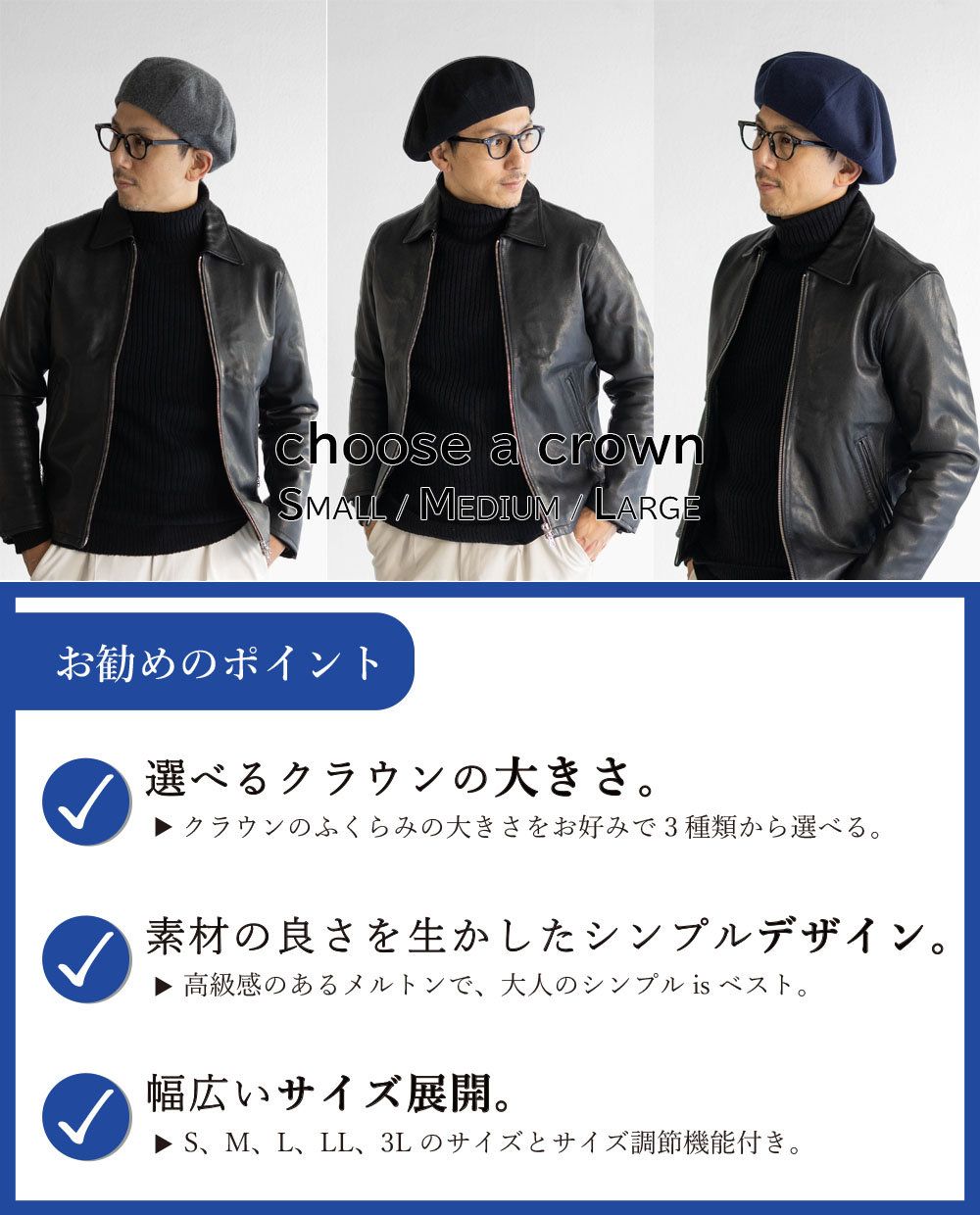 REPRESSION HATTERS リプレッションハッターズ ベレー帽 メンズ 秋冬 帽子 選べる大きさ 大きめ ゆったり 小さめ ウール メルトン ブランド 春 秋 冬 REP-1032