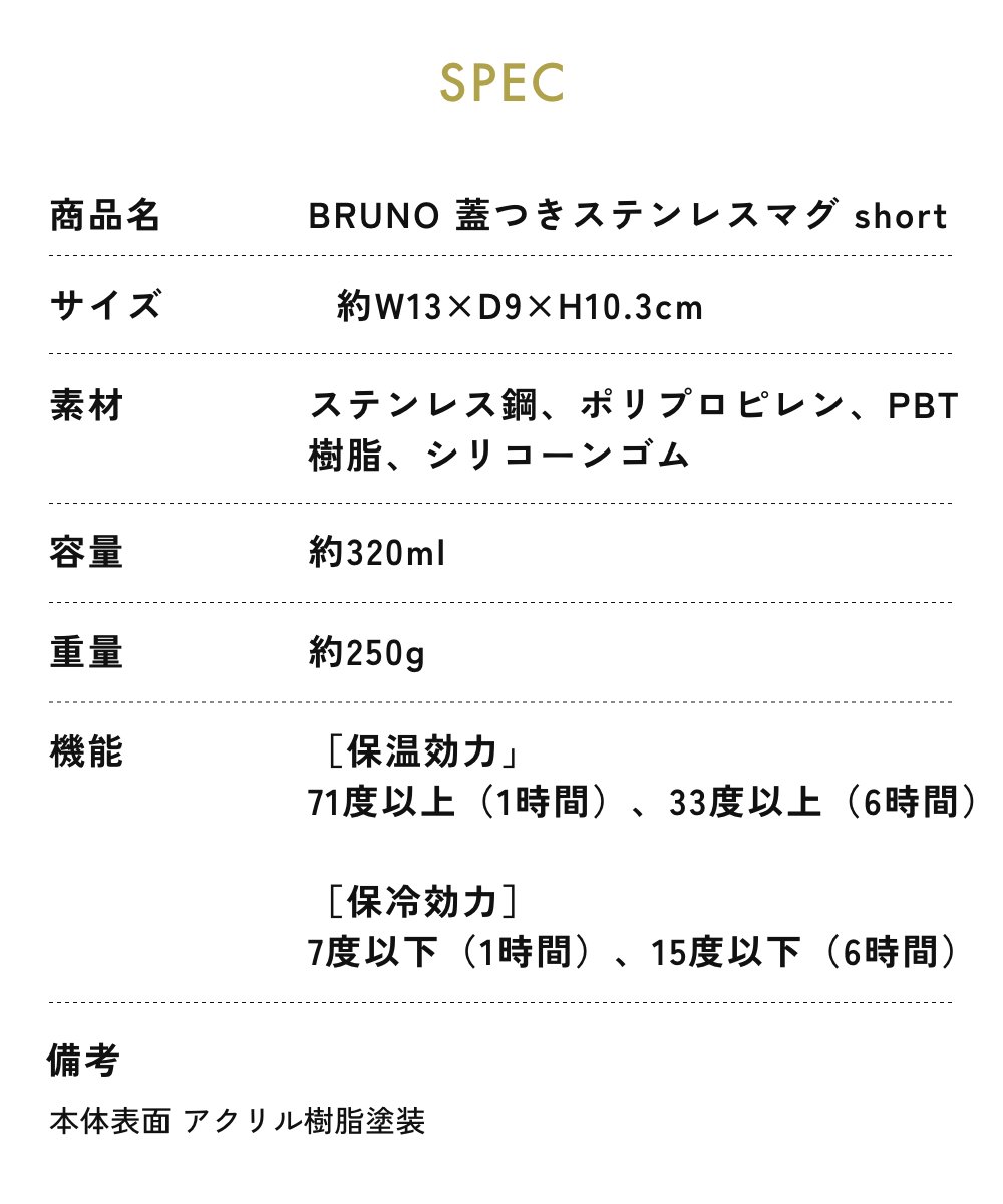 全6色 BRUNO 蓋つきステンレスマグ short 保温マグカップ ショートサイズ ブルーノ IDEA イデア 保温 保冷 真空断熱 アウトドア キャンプ リモートワーク デスク