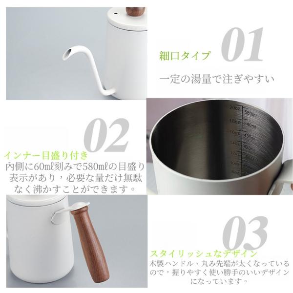 コーヒーポット ドリップポット 直火 対応 蓋付き 目盛り付き 保温 細口 ケトル