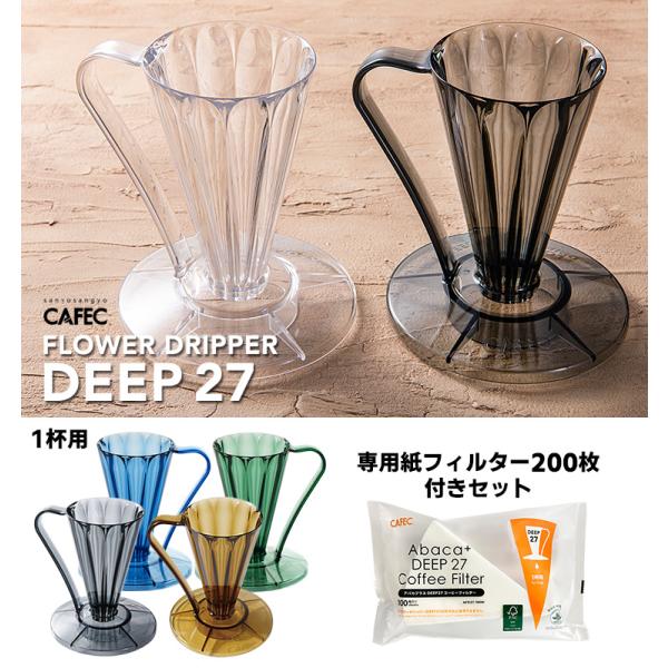 CAFEC フラワードリッパーDEEP27 1杯用 専用フィルター200枚付きセット クリアブラック クリアブラウン クリアネイビー クリアダークグリーン (ディープ27)