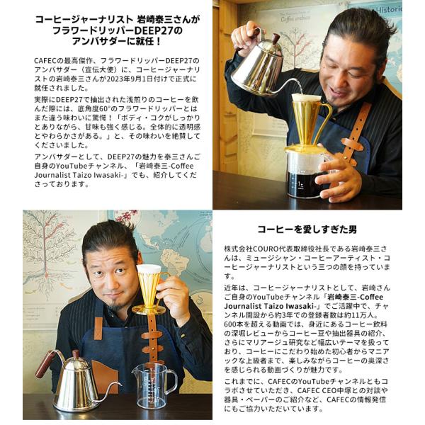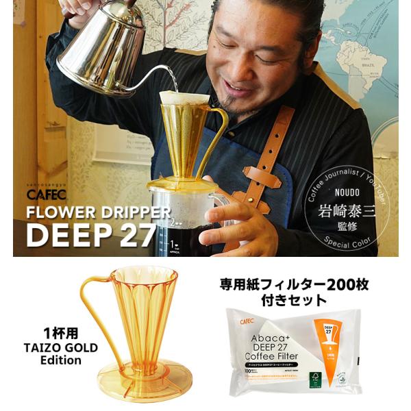 CAFEC フラワードリッパーDEEP27 1杯用 専用フィルター200枚付きセット TAIZO GOLD Edition 岩崎泰三 (ゴールド ディープ27)