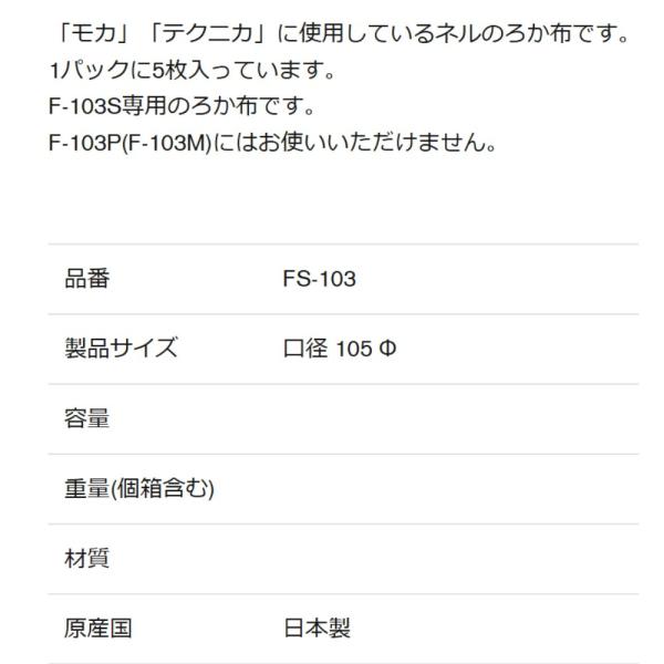 ろか布 5枚入り FS-103 HARIO ハリオ コーヒーサイフォンテクニカ F-103S専用 径108mm ハリオ式 コーヒー 珈琲 部品 パーツ FS-103 ◆メ