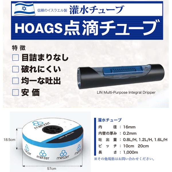 LIN 点滴ドリップテープ 10cmピッチ 吐出量0.8L/H 0.2mm×1000m 点滴チューブ 潅水チューブ ホーグス 代引不可