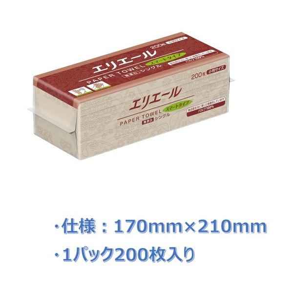 エリエール ペーパータオルスマートタイプ無漂白シングル200枚小判 ▼146-5538 703514 1ケース