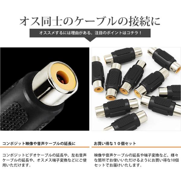 VISION RCA中継コネクタ 1PIN 中継プラグ 延長 メスーメス 端子 ジャック 10個セット