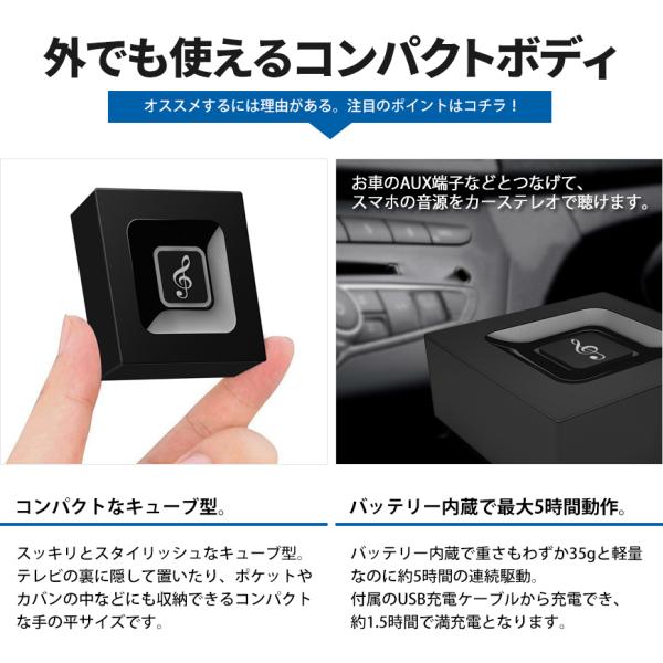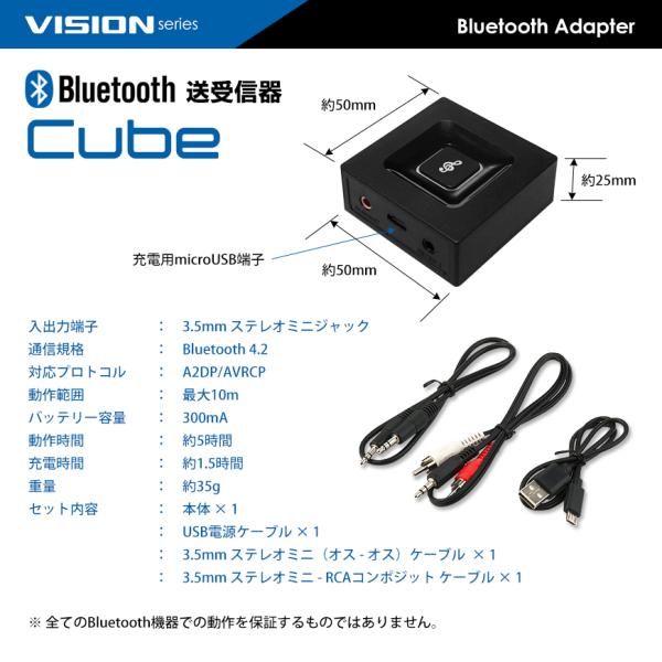 VISION Bluetooth オーディオ 送信機 受信機 レシーバー トランスミッター 3.5mm端子 iphone android 対応 一台二役 cube