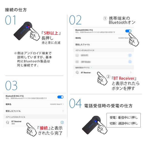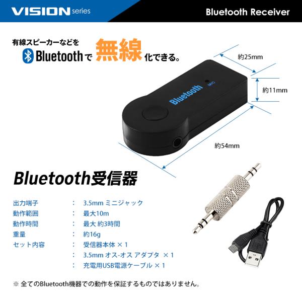 VISION Bluetooth 受信器 レシーバー 音楽 ミュージック カーオーディオ カーステ スマホ iPhone Android 3.5mm 有線 ワイヤレス AUX 無線化