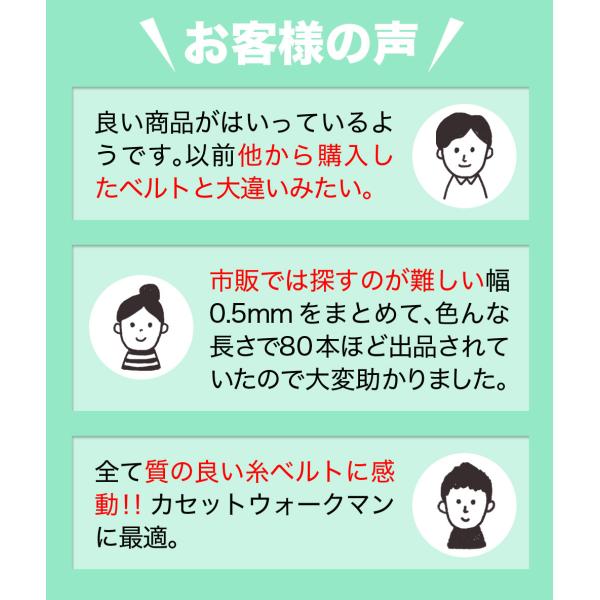 ゴムベルト オーディオ 修理 補修 cd dvd カセットデッキ ウォークマン シリーズ600個販売 平型 幅3mm 折径45〜130mm 40本越