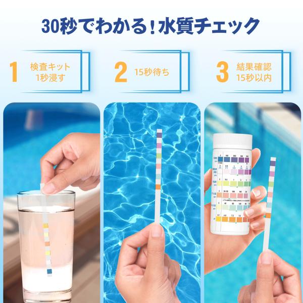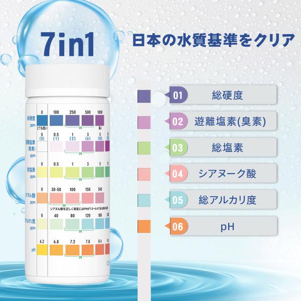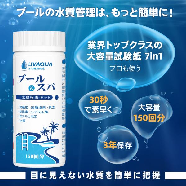 150回分 水質検査キット プールおよびスパ 温泉 浴槽 水槽等 温泉/温水用のテストキット 総硬度 遊離塩素 臭素 総塩素 塩素シアヌル酸 総アルカリ度 pH試験紙