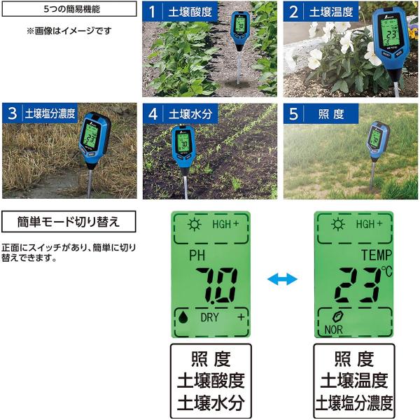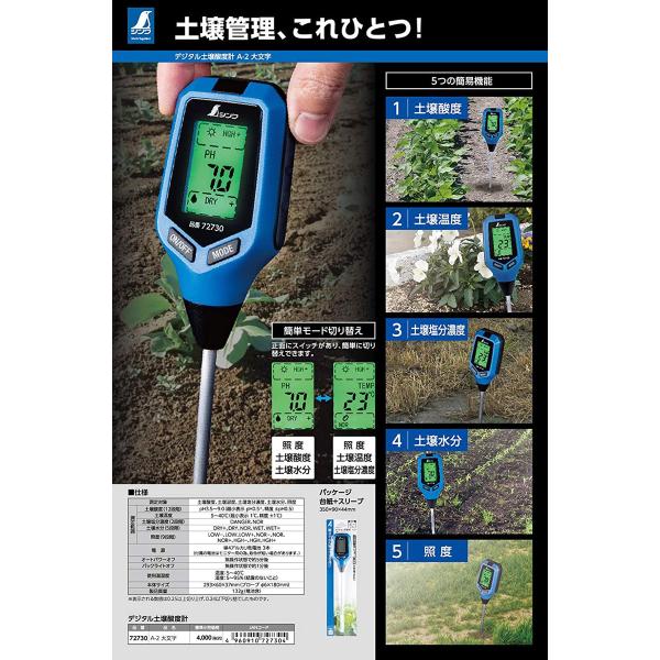 デジタル土壌酸度計/土壌水分計/地温計/照度計 A-2 72730 送料無料