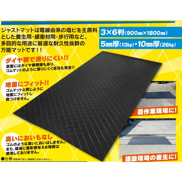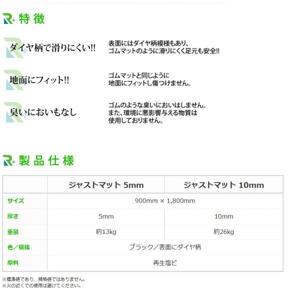 再生塩ビマット ジャストマット 3x6判 4枚入 900x1800mm 5mm厚 13kg JSTMT5 ダイヤ柄滑り止め ゴムマット風 リピープラス 代引不可 個人宅配送不可