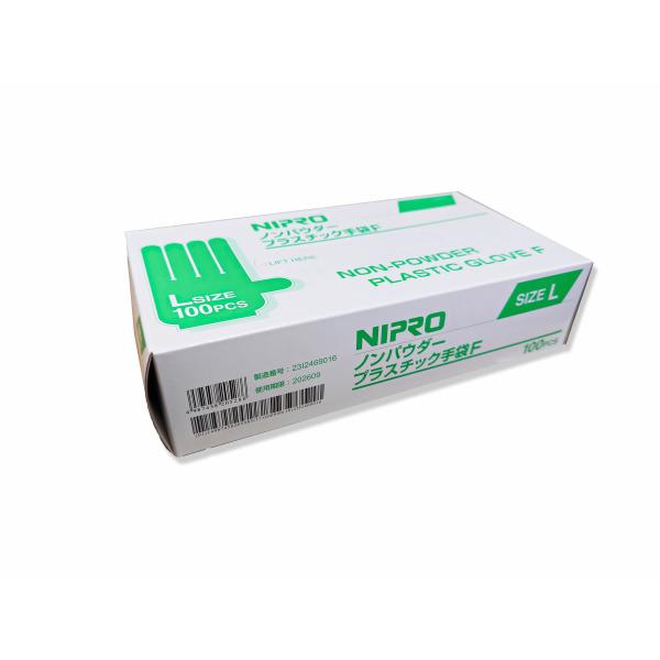 【在庫処分】ニプロ ノンパウダープラスチック手袋F Lサイズ(100枚入)