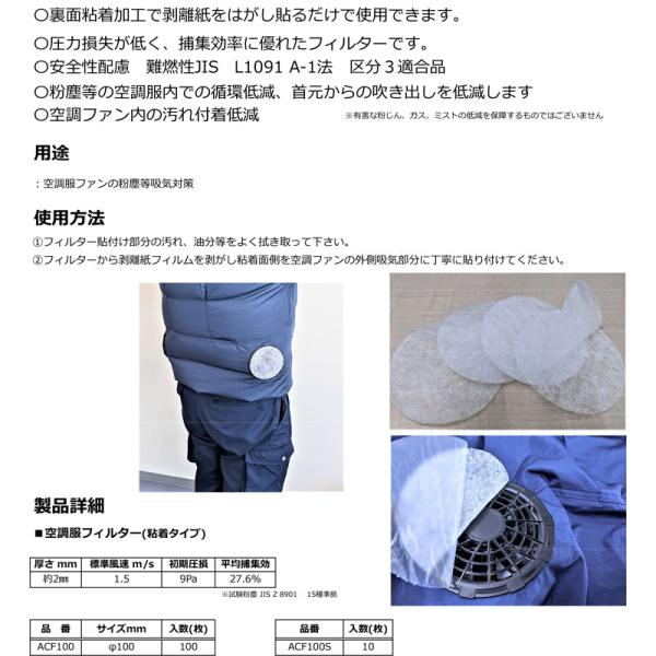 空調服用フィルター 10枚入 粘着タイプ ACF100S Φ100 t2mm 空調服ファン用 橋K 代引不可