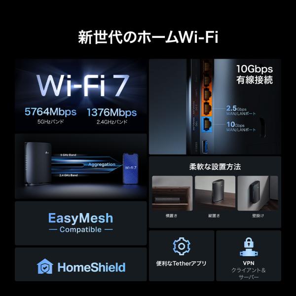 WiFi7 無線LANルーター WiFi7 wifiルーター 10Gigaポート 5764+1376Mbps TP-Link BE7140 MLO 8ストリーム USB3.0 IPoE IPv6対応 3年保証 iphone16対応