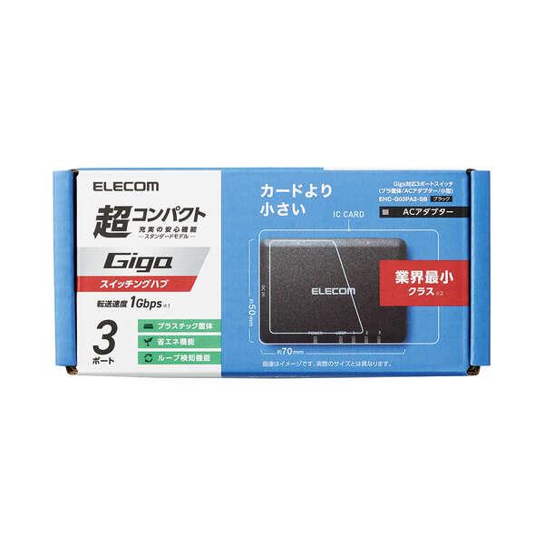 エレコム Giga対応 3ポートスイッチ プラ筐体 ACアダプター 小型 Giga対応スイッチングハブ プラスチック筐体 ブラック プラスチック(ブラック) EHC-G03PA2-SB