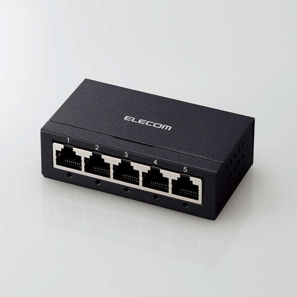 エレコム Giga対応 スイッチングハブ Giga対応 5ポート スイッチ 金属筐体 ACアダプター スイッチング ハブ 金属筺体 電源 メタル(ブラック) EHC-G05MA-B