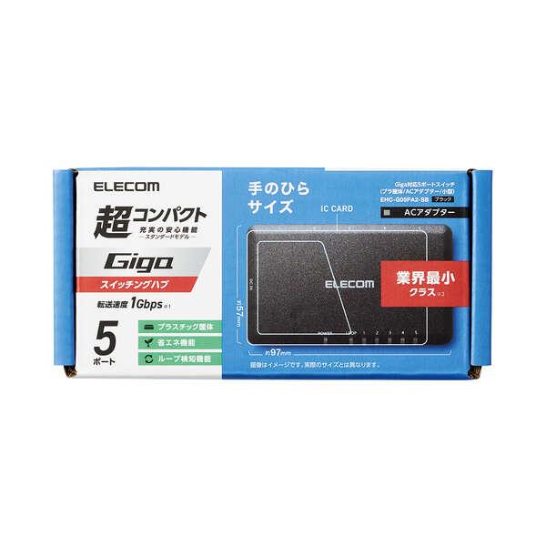 エレコム Giga対応 5ポートスイッチ プラ筐体 ACアダプター 小型 Giga対応スイッチングハブ プラスチック筐体 ブラック プラスチック(ブラック) EHC-G05PA2-SB