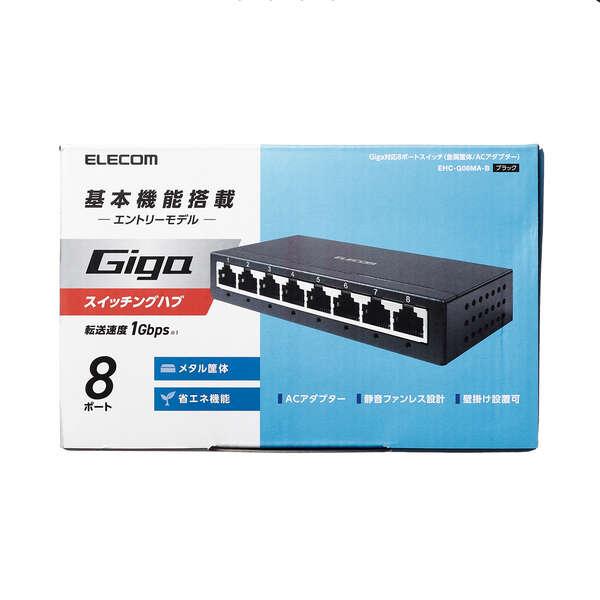 エレコム Giga対応 スイッチングハブ Giga対応 8ポート スイッチ 金属筐体 ACアダプター スイッチング ハブ 金属筺体 電源 メタル(ブラック) EHC-G08MA-B