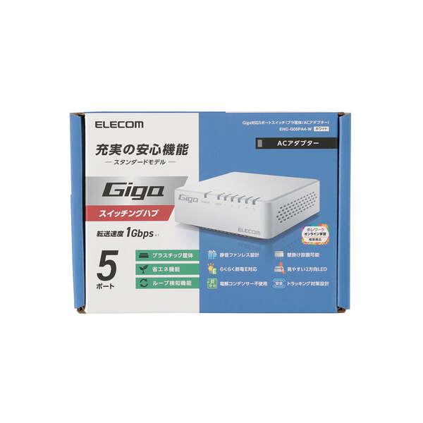 エレコム Giga対応 スイッチングハブ 5ポートスイッチ プラ筐体 / ACアダプター プラスチック筐体 5ポート プラスチック(ホワイト) EHC-G05PA4-W