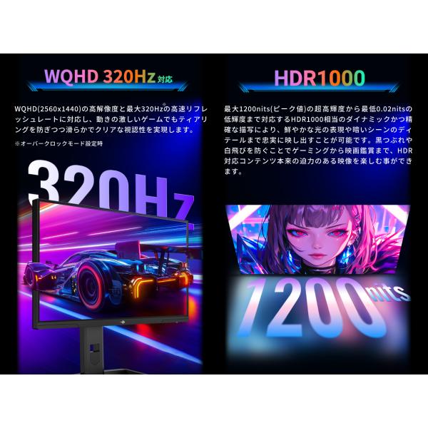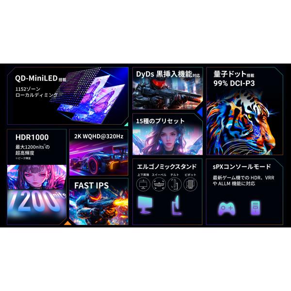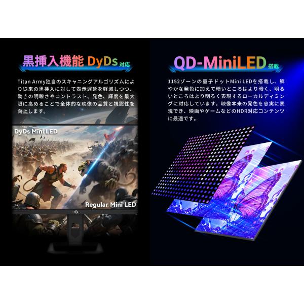 TITAN ARMY 24.5インチ 量子ドット MiniLED HDR1000相当 WQHD 320Hz ゲーミングモニター P245MS+ (1152ゾーン|FAST IPS|HDMI 2.1|DP 1.4|PS5 VRR|PIP/PBP)