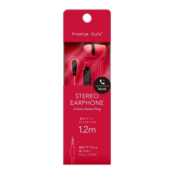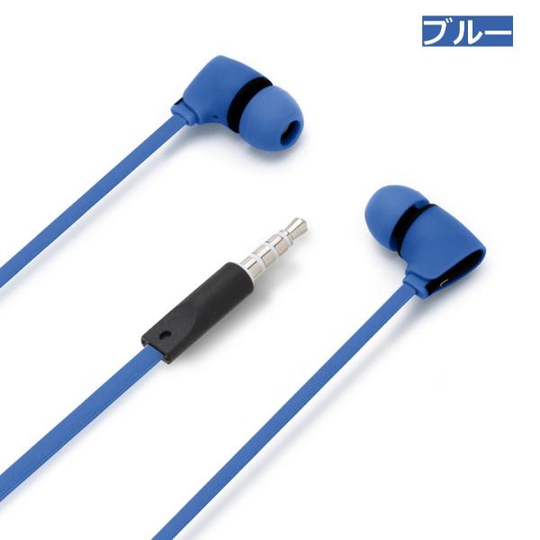 マイク付ステレオイヤホン 3.5mmステレオプラグ フラットケーブル 1.2m イヤホンマイク リモコン付き 通話ができる メール便送料無料