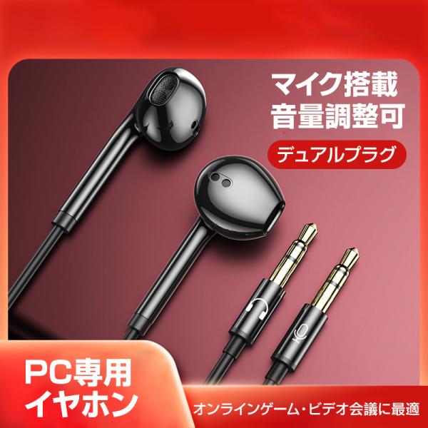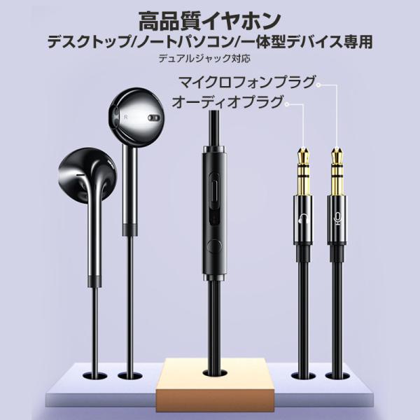 3.5mmデュアルプラグ インナーイヤー型 イヤホン マイク付 パソコン用 長さ3m 通話可能 高音質 イヤフォン 有線 ゲーム デスクトップPC テレワーク リモート会議