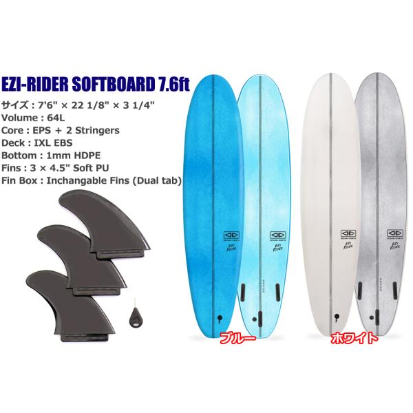 OCEAN&EARTH EZI-RIDER SOFTBOARD 7.6ft サーフボード ソフトボード オーシャン&アース イージーライダー 7'6" サーフィン EPS スラスター トライ 7.6