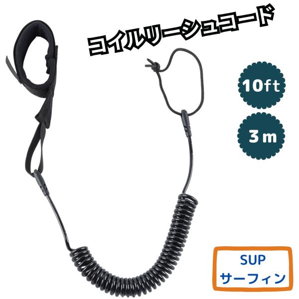 コイルリーシュコード 10フィート 3m サーフィン sup サップ サーフロープ サーフボード リーシュコード スタンドアップパドルボード