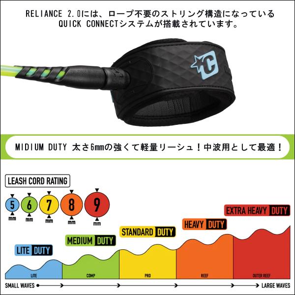 26 CREATURES クリエイチャー リーシュコード リッシュコード 6ft リライアンス パワーコード サーフィン用 6mm 軽量 RELIANCE 2.0 Medium Duty 日本正規品