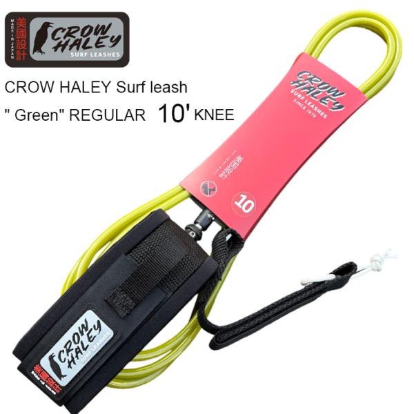 リーシュコード CROW HALEY Surf leash ”Green” REGULAR 10’ KNEE クローハーレーサーフリーシュ ロングボード用ニー(膝下用)MADE IN JAPAN ハンドメイド
