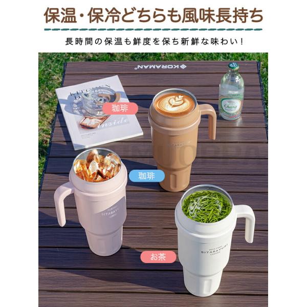 タンブラー 持ち運び ストロー付き 保冷保温 蓋付き タンブラー こぼれない かわいい 水筒 1400ml ストロー 直飲み 真空断熱 ウォーターボトル ステンレス