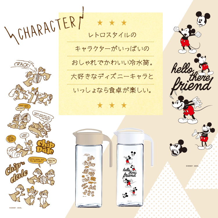 冷水筒 ディズニー DISNEY チップ デール ミッキー D211C 2本セット MK24 CD25 アスベル 耐熱 横置き 2リットル 2L おしゃれ 水差し ピッチャー