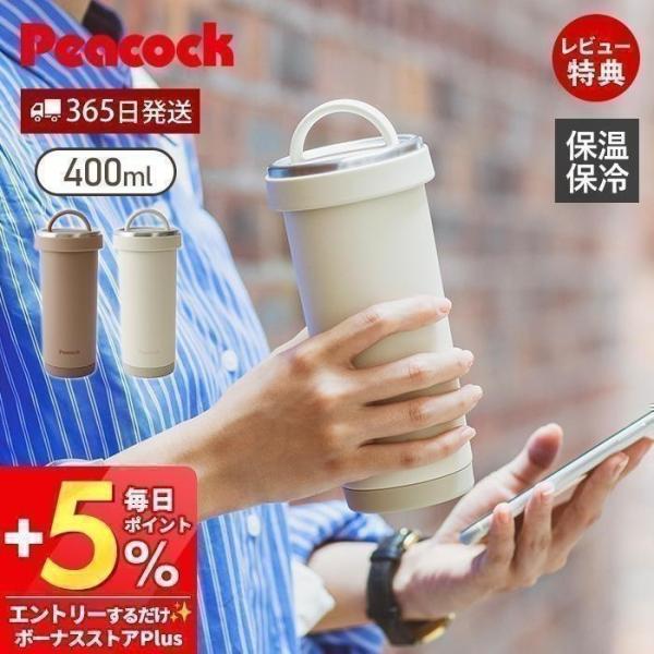 タンブラーボトル 水筒 マグ 400ml ピーコック 魔法瓶 保温 保冷 ハンドル 持ち手 ステンレスボトル 洗いやすい 持ち運び AKS-R41