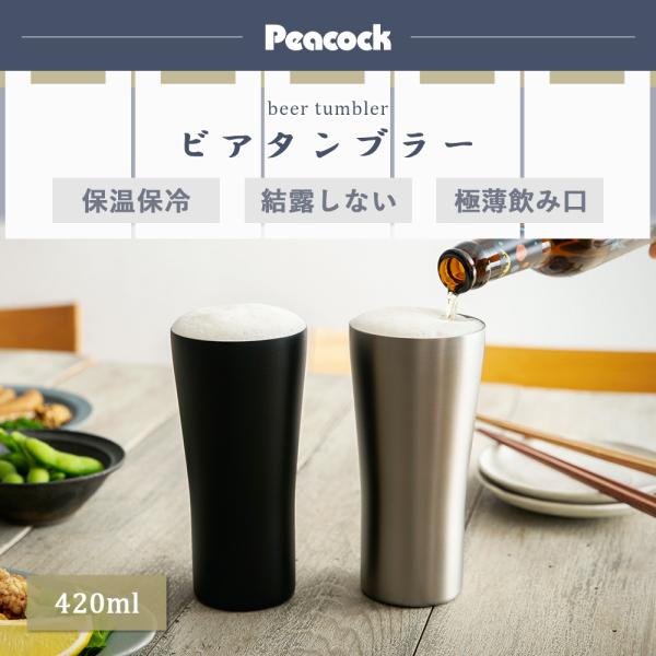 ビア タンブラー グラス ビール カップ ステンレス 真空二重 保冷 割れない 350ml缶 魔法瓶 薄い おしゃれ おうち居酒屋 ピーコック ATD-42