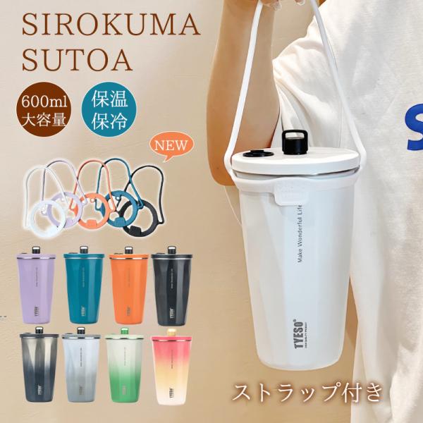タンブラー ストロー 蓋付きタンブラー 水筒 ストロー付き 保温 600ml 蓋付き 大容量 真空断熱 保冷 保温 持ち運び マグボトル 直飲み 大容量