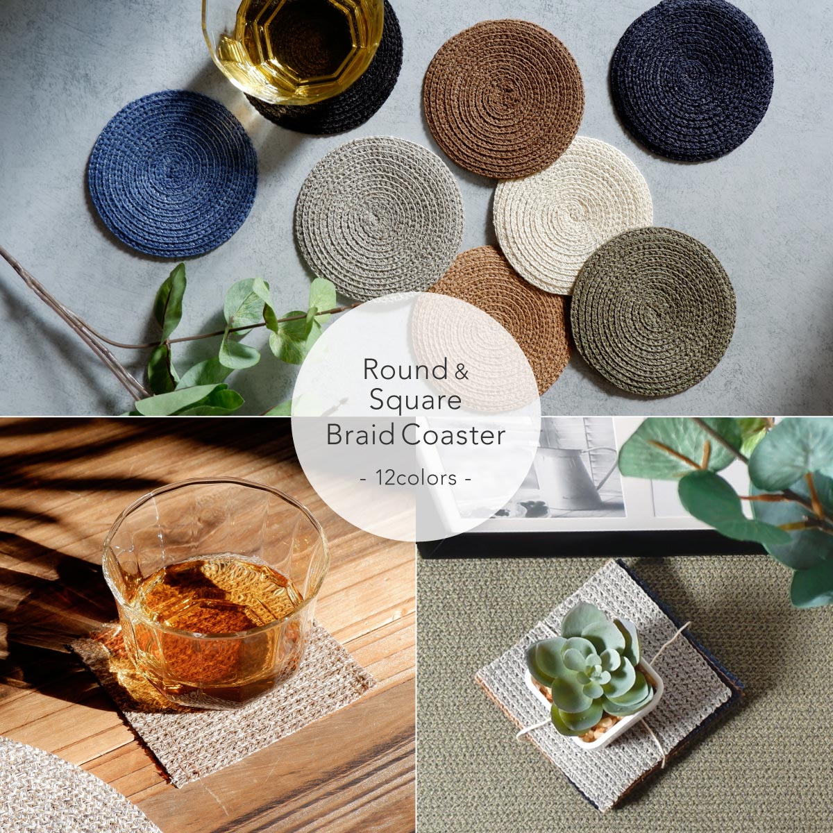 ブレードコースター おしゃれ 布 ラウンド&スクエアブレードコースター アジア エスニック 和モダン シンプル 帽子屋 ケースタ