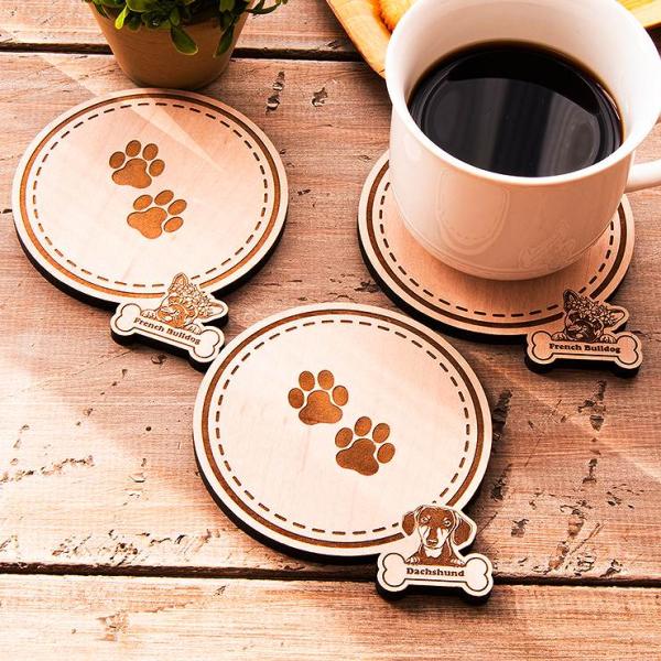 コースター 3枚セット 木製 絵柄が見える 2種から選べる デザイン フレンチブルドッグ 犬 約9cm程度 雑貨 加賀コースター コースター020